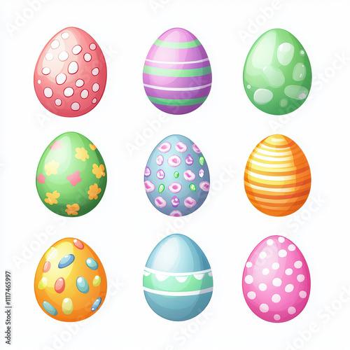 Colorful Easter eggs in various patterns and colors, perfect for spring celebrations