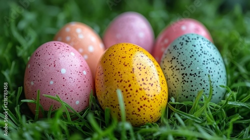 easter, egg, colourful, pastel, speckled, grass, spring, vibrant, decoration, holiday, nature, springtime, festive, painted, bright, holiday season, closeup, pattern, pois, season, celebration, greengrass, fun, joyful, texture, creative, high-coloured, textured, photo, vivid colors, seasonal, natural, background
