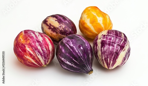 aubergine, vegetable, colourful, food, purple, orange, yellow, stripes, healthy, cooking, diet, fresh, organic, produce, farm, market, ingredient, nature, vitamin, plant, epicure, delicious, ripe, summer, autumn, harvest, texture, background, isolated, closeup, vibrant, bright, tasty, natural, raw, vegetable, nourishment, agriculture, garden, growth