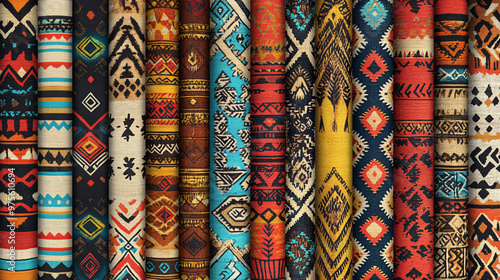 Colorful Ethnic Geometric Patterns Seamless Textile Fabric Background