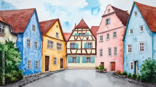 street, house, architecture, colourful, village, painting, scenery, watercolor, courtyard, window, detail, garden, rustic, exterior, charme, calmness, pastel, urban, brick, rooftop, daylight, peaceful, artistic, creative, composition, landscape, european, picturesque, traditional, quaint, heritage, travel, ambience, tour tourism, historical, design, artist, vibrant, serene, inviting, wall, relaxation, setting, nature, attracted