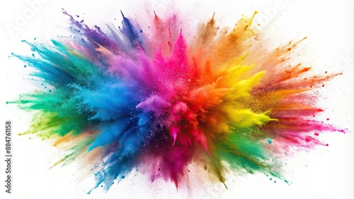 Colorful explosion of powder with freeze isolated on white background, abstract splatter of colored dust powder , explosion