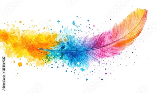 feather, watercolor, colourful, painting, splash, art, design, background, white, rainbow, texture, vibrant, bright, illustration, graphic, abstract, nature, beauty, elegance, delicate, light, soft, freedom, hope, dream, imagination, creativity, inspiration, fantasy, artistic, whimsical, pretty, stylish, gentle, peaceful, serene