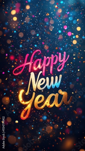 celebration, new year, festive, colourful, confetti, sparkle, design, greeting, party, joy, happiness, light, decoration, tradition, event, countdown, midnight, fireworks, wishes, fun, cheer, excitement, hope, renewal, culture, winter, gathering, family, friends, moment, memory, optimism, future, joyfulness, positivity, warmth, togetherness, nightlife, festivity, inspiration, creativity, art, typography, colours, illumination