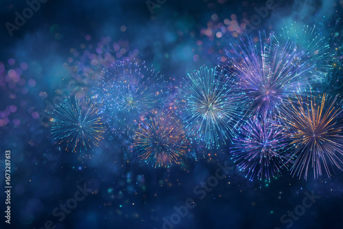 Colorful fireworks display exploding in the night sky with sparkling lights and bokeh effects a festive celebration