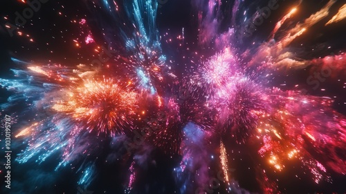 Colorful Fireworks Explosion in the Night Sky