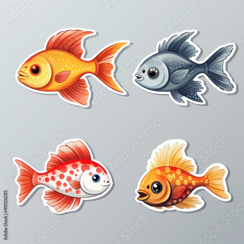 Colorful fish illustrations perfect for stickers, marine-themed designs, and children's books.