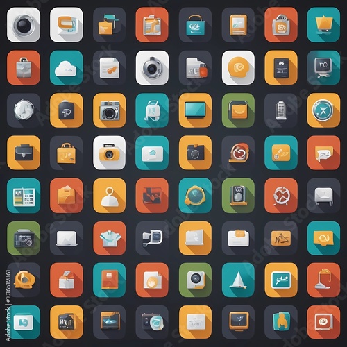 Colorful Flat Design App Icons Set for Digital Interfaces