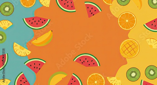 watermelon, kiwi, pineapple, mango, orange, vivid colors, seamless pattern, citrous, fresh, fruity, juicy, health food, summer, fresh produce, organic, sweet fruit, healthy eating