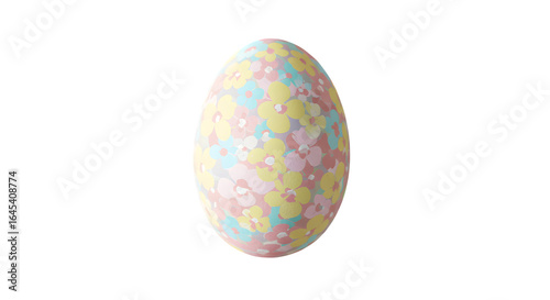 Colorful, floral egg has a painted texture. It's ideal for spring designs, easter-themed backgrounds, or seasonal posters.