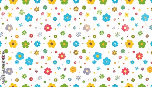 Colorful Floral Pattern on White Background - A Cheerful and Playful Design.