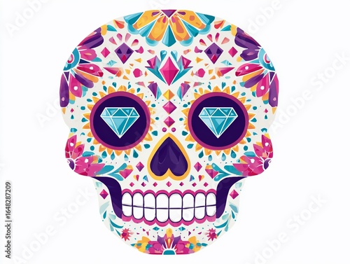 Colorful Floral Sugar Skull Illustration for Day of the Dead