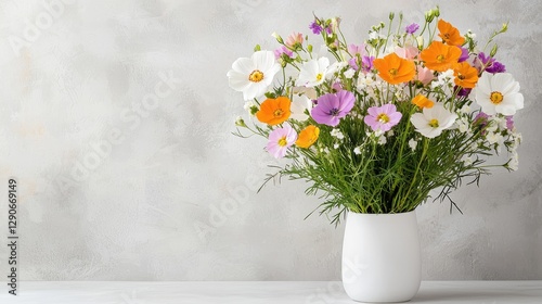 Colorful flower bouquet in vase, neutral background, possible use for greeting card design, interior decor