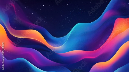 Colorful flowing abstract waves with a starry background, vibrant, dynamic, and decorative backdrop use