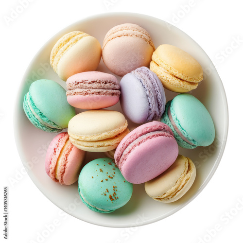 Colorful French Macarons in a White Bowl