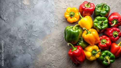 Colorful Fresh Bell Peppers on Gray Surface Arranged in Cluster