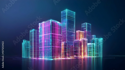 city, building, architecture, digital, neon, colourful, light, technology, futuristic, abstract, geometric, graphic, illustration, design, urban, modern, skyscraper, illuminated, glowing, line, point, computer, rendering, illumination, vibrant, pink, purple, blue, green, red, night, exterior, city landscape, neon light, city landscape