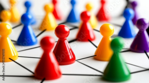 Colorful Game Pieces on a Network Background