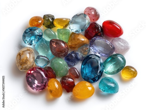gemstone, collection, colourful, variety, gem, precious, semi-precious, faceted, raw, rough, polished, gem, quartz, emerald, sapphire, ruby, topaz, amethyst, turquoise, agate, opal, crystal, transparent, opaque, sparkling, shiny, precious stone, natural, mineral, blue, red, green, yellow, purple, pink, orange, brown, oval, round, pile, heap, isolated, white background, topview