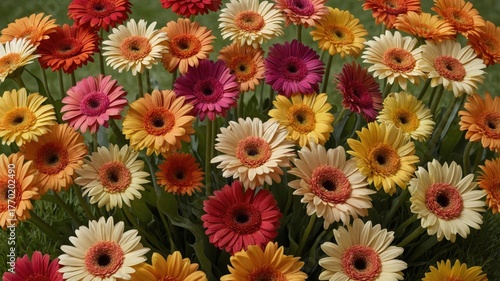 gerbera, daisy, colourful, blooming, garden, flower, blossom, flower petals, red, yellow, orange, pink, green, nature, fresh, spring, summer, beautiful, landscape, leaf, bouquet, decoration, meadow, natural, flora, growth, botany, cheerful, joyful, bright, lush, field, arrangement, many-coloured, stem, bloom, foliage, seasonal, ornamental, decorative, wildlife, sunny, grass, lively, freshness