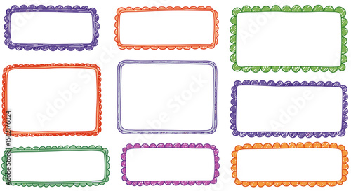Colorful hand drawn frame set vector illustration for creative design and decoration