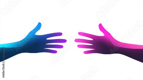 Colorful Hands Reaching Out in Gradient Shades of Blue and Pink