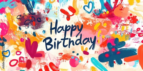 Colorful Handwritten Happy Birthday Message with Abstract Background and Space for Personalized Text in Bright Artistic Style