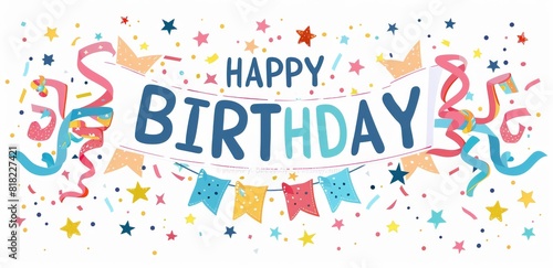 happy, birthday, banner, colourful, confetti, white, background, flat, vector, illustration, simple, cute, cartoon, design, blank, space, card, text, playful, star, ribbon, celebration, theme, festive, decoration, party, cheerful, joyful, fun, greeting, bright, happy birthday, event, message, template, whimsical, adorable, vibrant, minimalist, artistic, creative, children, holiday, special, occasion