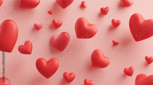 Colorful heart shapes on a soft pink background, ideal for Valentine's Day, love themes, and romantic celebrations.