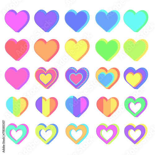 colorful heart shapes, set of rainbow neon heart.