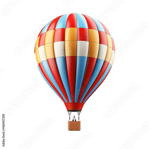 Colorful Hot Air Balloon Flying in the Sky isolated on transparent white background, clipping path