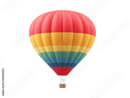 Colorful hot air balloon with red yellow green and blue stripes isolated on transparency background symbolizing adventure freedom and travel with cheerful uplifting mood