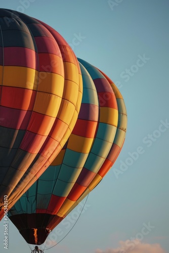 Colorful hot air balloons flying in the sky. Perfect for travel and adventure concepts