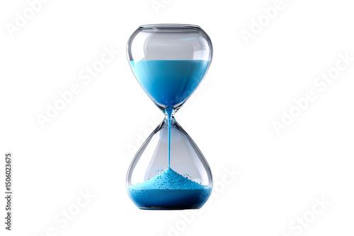 Colorful hourglass with blue sand on a clear background