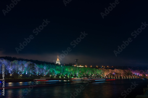 night, illumination, colourful, embankment, moscow, city, river, water, light, architecture, light, panorama, sky, city landscape, landscape, travel, view, urban, sunset, skyline, building, evening, europa, town, moscow