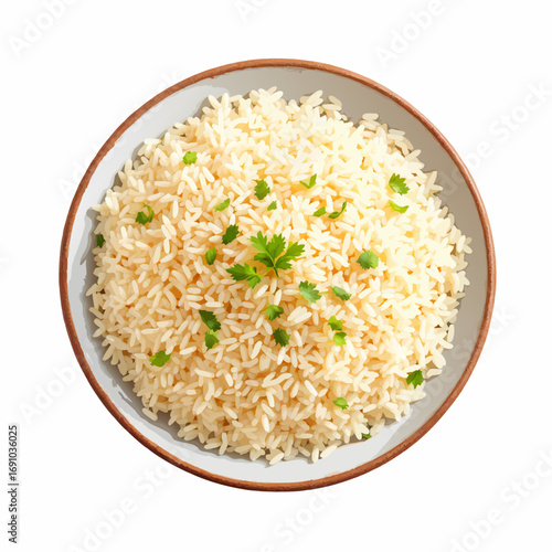 rice, cooked, grain, food, dish, bowl, herb, cilantro, parsley, garnish, healthy, vegetarian, meal, cookery, eatery, plate, yellow, beige, light, fresh, topview, illustration, digital artwork, graphic, food photography, closeup, delicious, tasty, appetising, alimentary, carbohydrate, asian, indian, south american, mexican