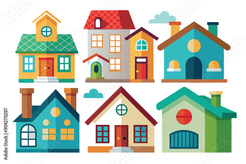 Colorful Illustration of Six Different Houses with Various Architectural Styles