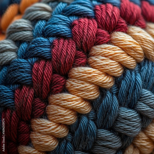 Colorful Interwoven Threads A Textured Tapestry of Red Blue and Gold.