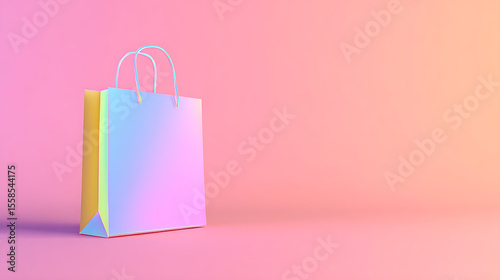 shopping bag, iridescent, colourful, retail, shopping, bag, modern, trendy, pastel, gradient, holographic, minimal, copy space, studio shot, rendering, design element, commercial, presentation, promotion, e-business, marketing, advertising, abstract, vibrant, stylish, isolated, three-dimensional