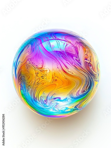 Colorful iridescent soap bubble isolated on white background