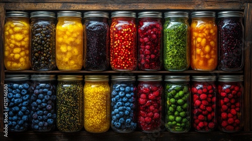 Colorful Jars of Homemade Berry Preserves and Fruit Conserves.