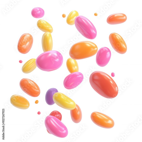Colorful jelly beans scattered, transparent background
