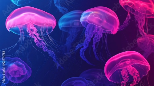 jellyfish, underwater, ocean, marine life, glowing, colourful, aquatic, tentacle, sea, nature, wildlife, peaceful, swimming, vibrant, illuminated, deep sea, ecology, ecosystem, coral, oceanography, blue, pink, purple, semitransparent, aethereal, biology, bioluminescence, environment, undersea, fauna, ocean floor, creature, invertebrate, water, calm, calmness