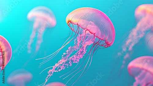 colours, imagination, fantasy, vibrant, artistic, jellyfish, ocean, water, colourful, swim, gracefully, blue, sea, marin, underwater, aquatic, coastal, coral, adventure, delicate, playful, mesmerize, plankton, motion, creature, environment, dynamic, pattern, beauty, elegance, school, ecosystem, current, movement, aethereal, species, wave, fluid, habitat, surreal, landscape, wildlife, high-coloured, transparent, mystery
