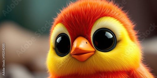 Colorful kawaii penguien with big black eyes and cute facial expression, black line art, whimsical creature