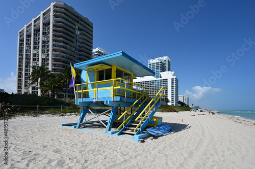 lifeguard, colourful, beach, flag, warning, recreation, leisure, sand, sea, ocean, miami, miami beach, florida, us, travel, tour tourism, tourist destination, sky, clear, cloudless, blue