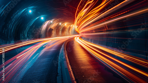 tunnel, night, urban, motion, vehicle, speed, curve, illuminated, roadway, transportation, city, landscape, street light, reflections, colours, dynamic, movement, asphalt, thrill, adventure, traveling, speedway, infrastructure, artsy, scene, artistry, line, texture, reflective, illumination, circular, vibrant, glow, ambience, drive, modern, technology, energy, excitement, nightlife, exploration, journey, high-coloured, travel, city landscape, transport
