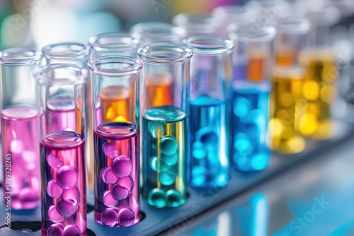 Colorful liquid experiments in glass test tubes