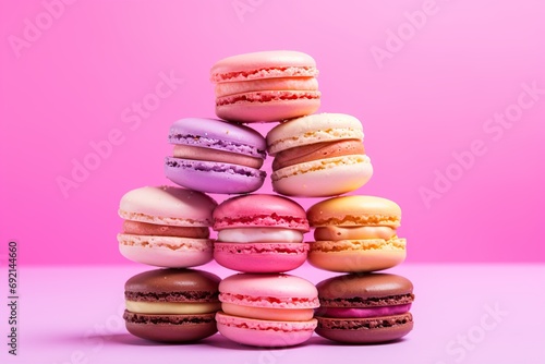 Colorful macarons dessert on pink background