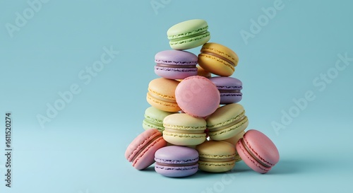 Colorful Macarons Stacked on Blue Background
